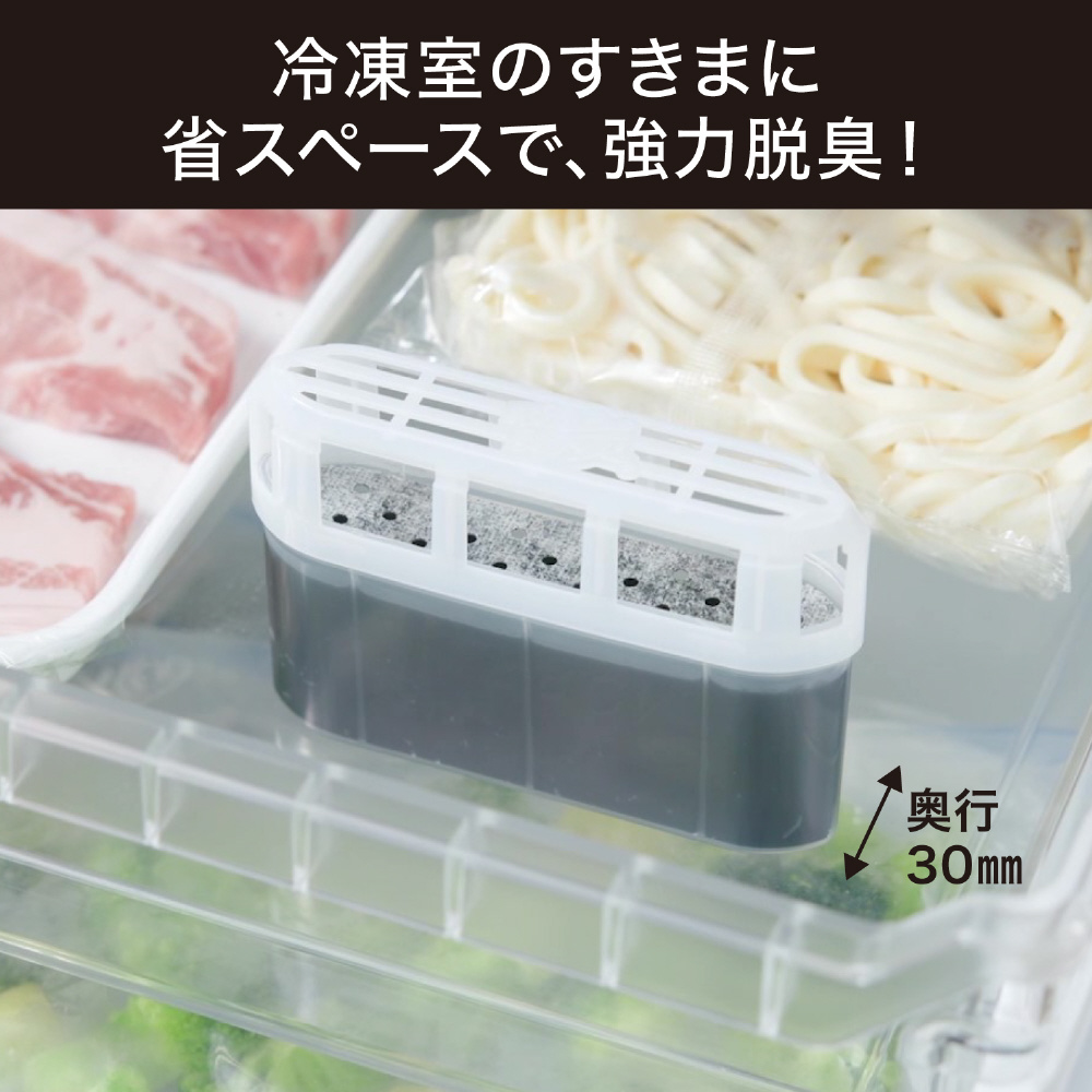 【冷凍保存臭をしっかり脱臭】ニオイうつりの原因となるイヤなニオイを脱臭します。