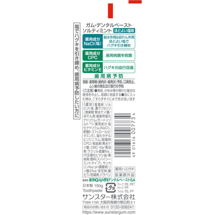 デンタルペースト[ソルティミント]150g (スタンディングタイプ)