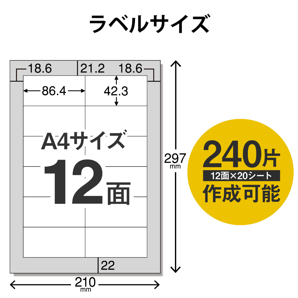 時間の経過とともに、粘着力が強くなる特殊粘着剤を使用した宛名・表示ラベル。(A4サイズ:12面・20シート:240片)