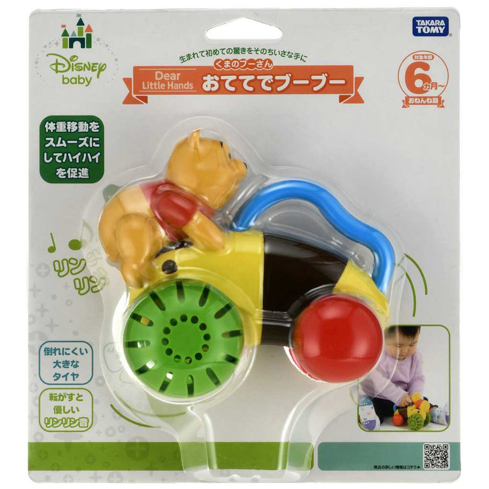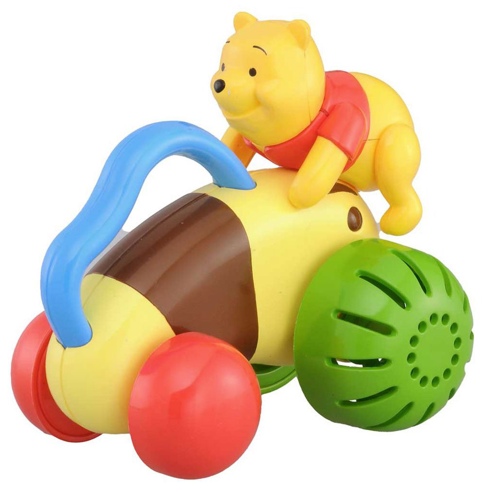 赤ちゃんが遊びやすい、くまのプーさんの取っ手つき手転がしおもちゃです。