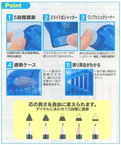 ダイヤルに合わせて5段階に芯の長さを自由に変えられます。