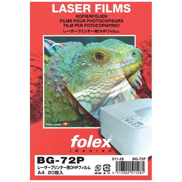 レーザープリンター用 OHPフィルム 紙厚0.125mm[A4サイズ /20枚] BG-72P