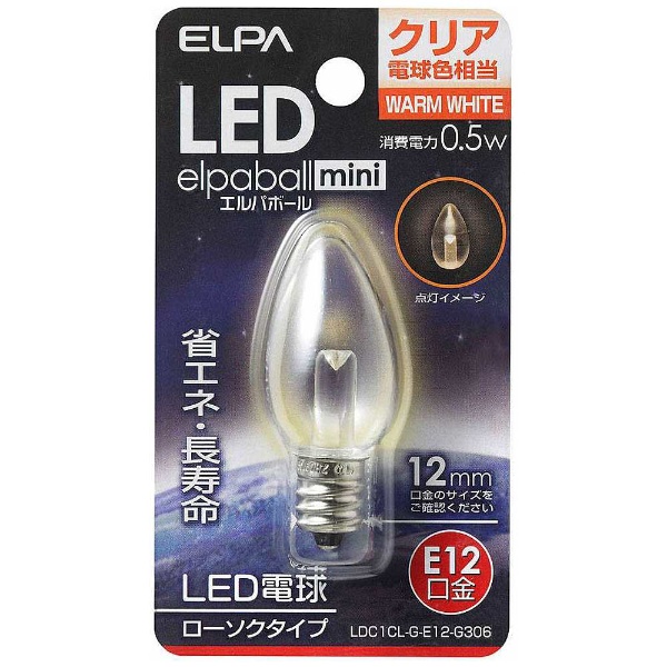 LED装飾電球 ローソク球形 LEDエルパボールmini クリア LDC1CL-G-E12-G306 [E12 /シャンデリア電球形 /電球色 /1個]