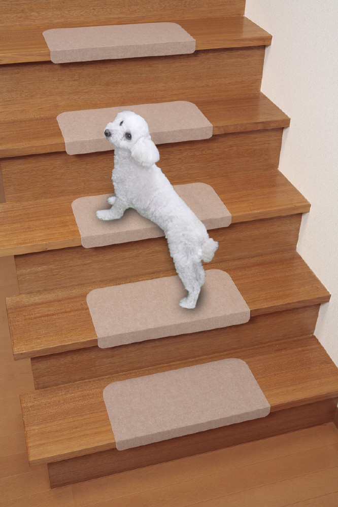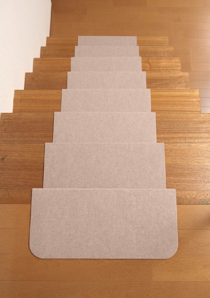 おくだけで吸着する、折り曲げ付きの足裏にやさしい階段用マットです。