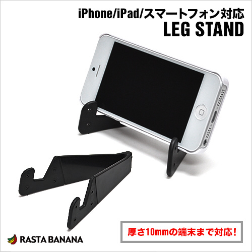 タブレット/スマートフォン対応[〜厚み10mm] LEG STAND ブラック
