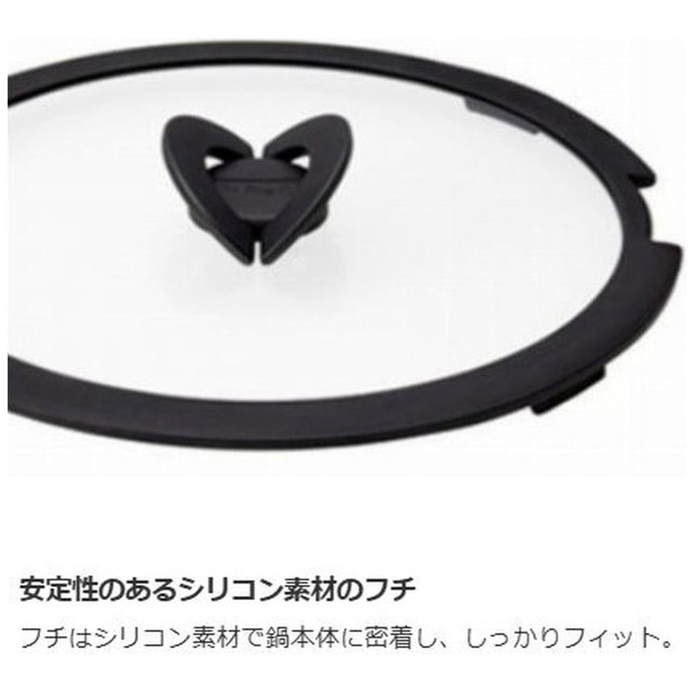 ■調理中の中身が見やすいガラスぶたは、シリコン素材のふちで、 お手持ちのお鍋やフライパンにしっかりフィットします