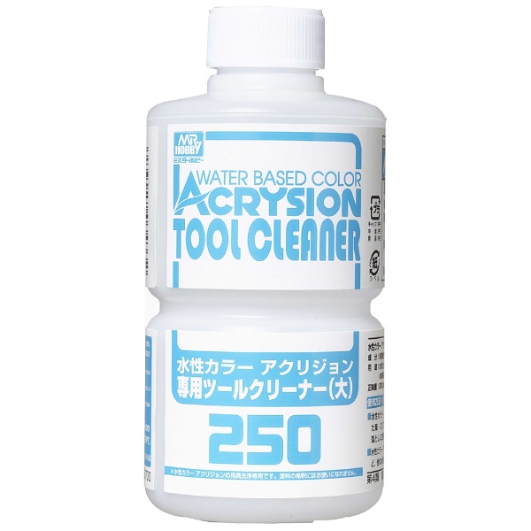 新水性カラーアクリジョン用のツールクリーナーです。エアブラシの洗浄にお使いください。250ml入り。