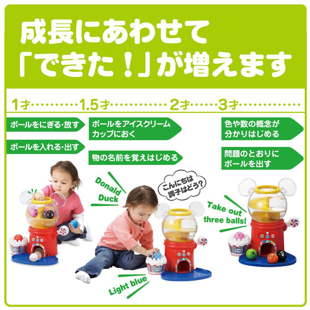 ガチャで遊びながら英語・数・色が学べる!ディズニーキャラクターのおしゃべりボール付き知育玩具。