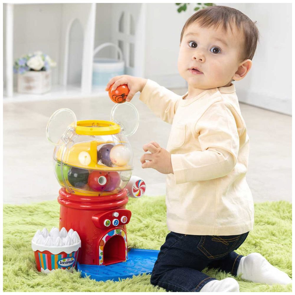 ■ボールをアイスクリームカップに置くと、ボールの色を音声で教えてくれたり、キャラクターのおしゃべりが楽しめる。