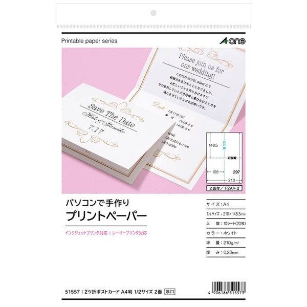 ■ 招待状や案内状に便利なA4判1/2サイズ2ツ折カードです。