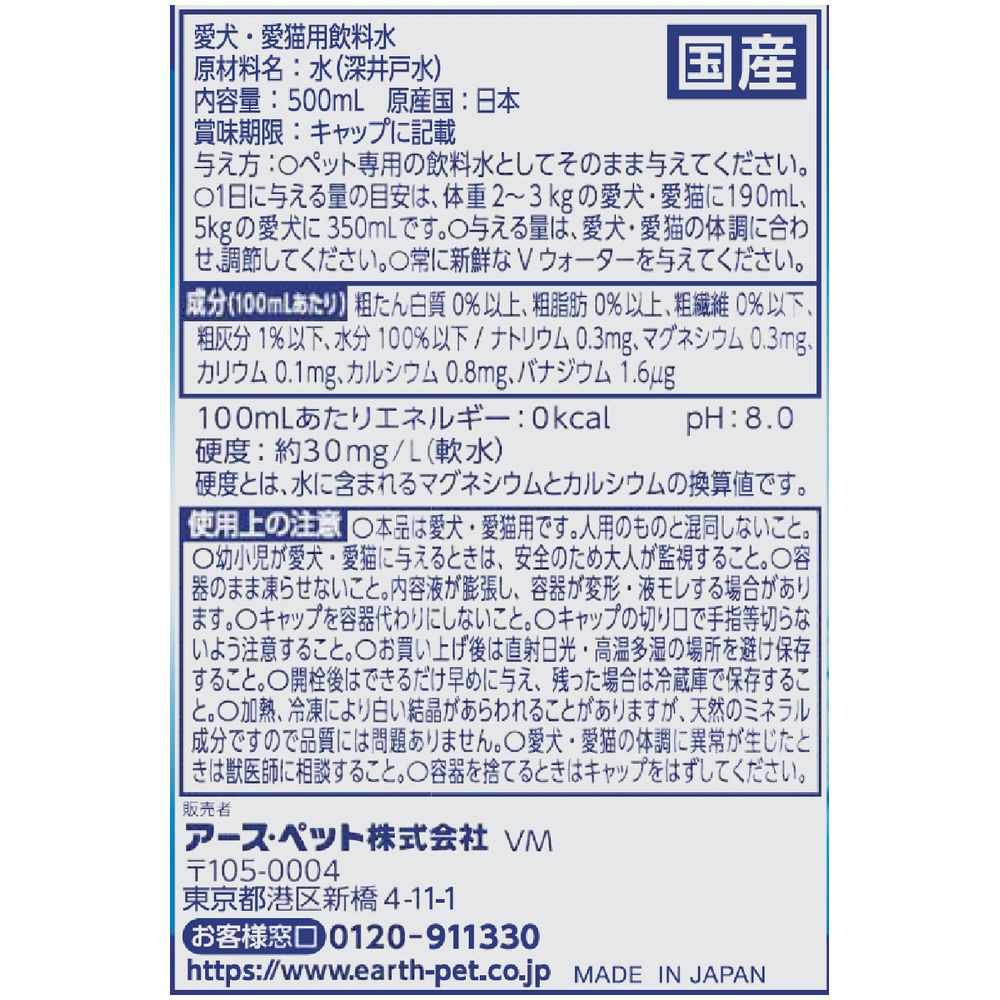 ペットの天然水Vウォーター 500ml