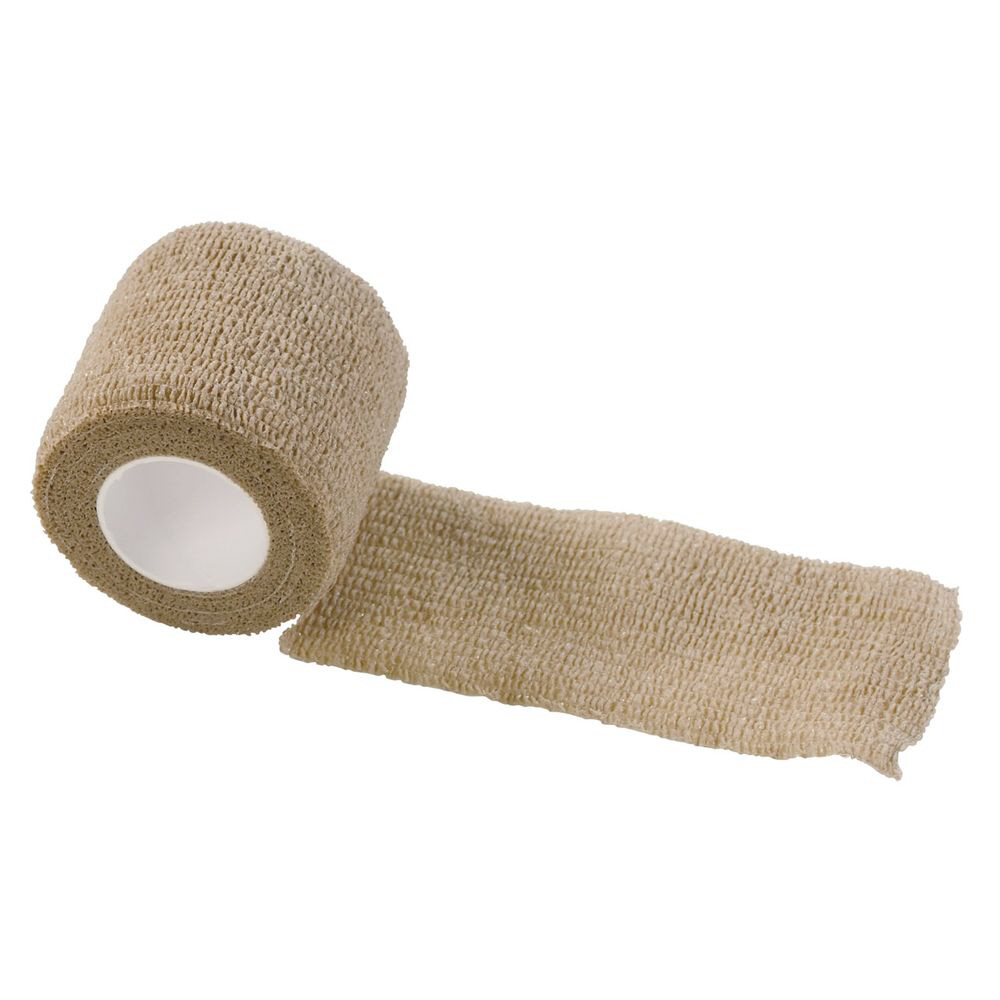 ガーゼの固定や傷口なめ防止などの皮膚の保護に。巻き直しが可能。留め具なしに固定可能。伸縮性が優れ、間接部等にフィット。手でカット可能。