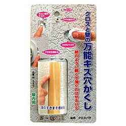 ビニールクロスとカベにできた穴(ピン穴、釘の抜き穴、繊維壁のキズ穴、大きなキズ穴など)や柱とカベのすき間、エアコンホースとカベのすき間の穴埋め補修材です。
