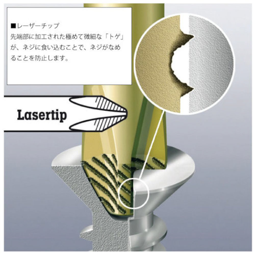 ■先端のレーザーチップにより、ねじへの食いつきに優れています。
