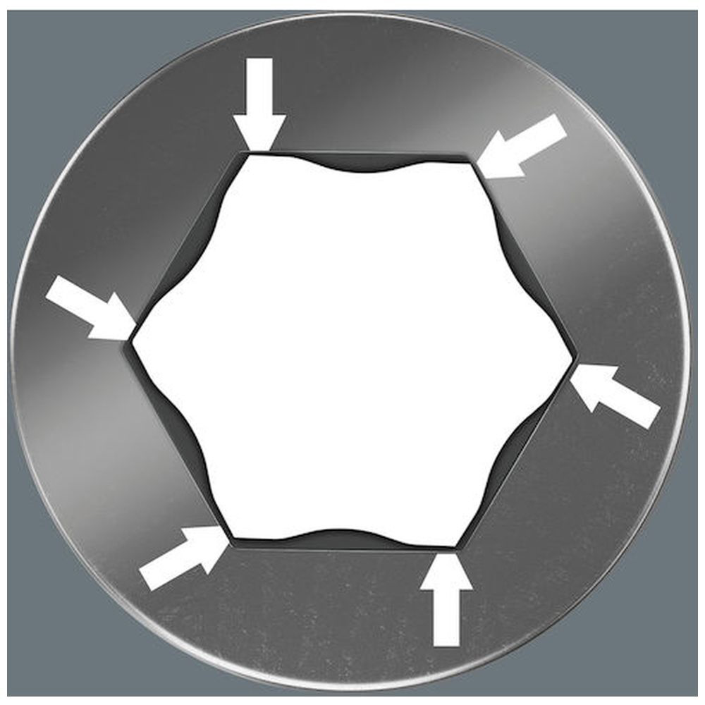 Wera独自のHex-Plusと呼ばれる面接触構造により、六角ねじ穴の内側を傷めず、ねじの長寿命化に貢献します。