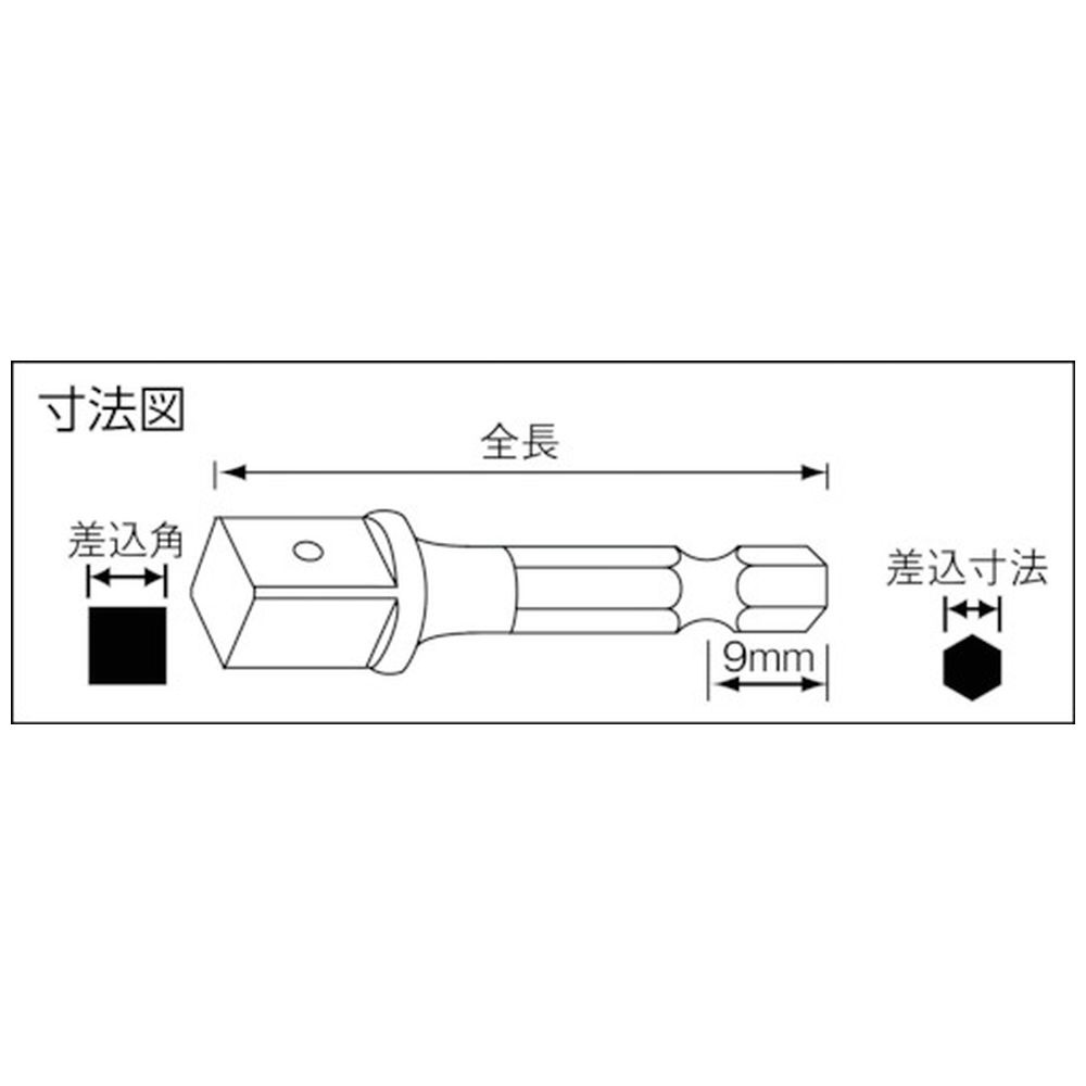 ドライバーアダプター6.35x対辺四角9.52mmx50Lボール止付 3DA305NB