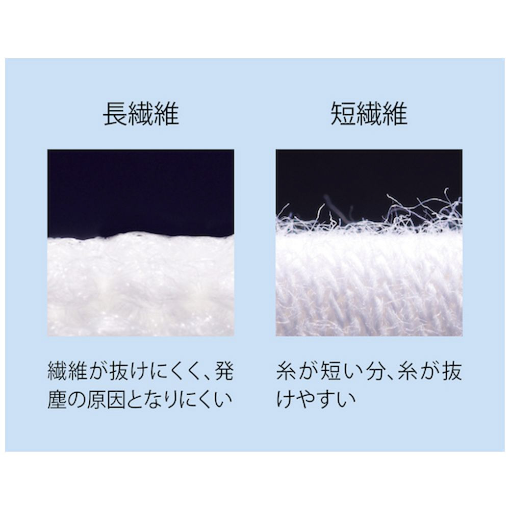 ■長繊維を使用し、手袋からのホコリや糸くずが発生しにくい低発じん性手袋です。