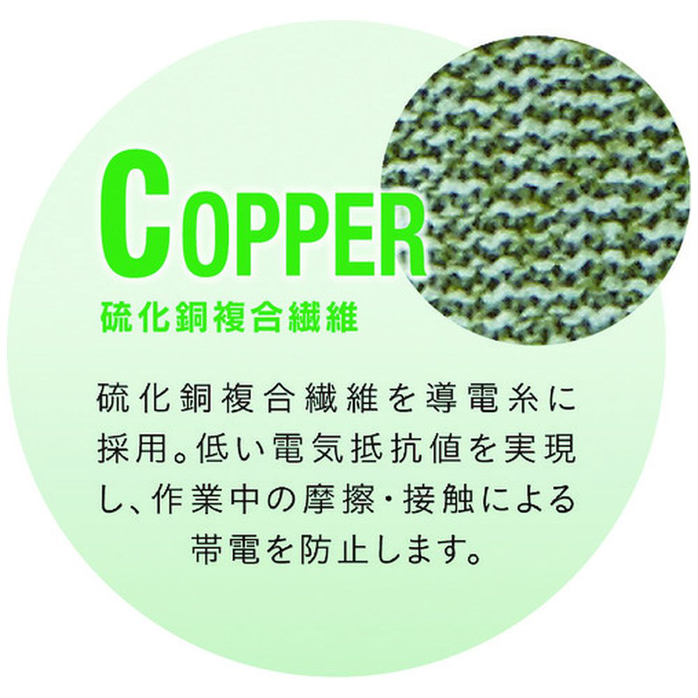 ■硫化銅複合繊維を使用し、優れた導電性により摩擦・接触帯電を防止します。