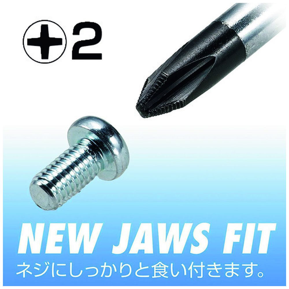 ■プラスの刃先はNewジョーズフィットで、刃先に高強度の金属粒を特殊コーティングし、十字ねじ特有のドライバーの浮き上がり現象〈カムアウト〉を最大限防ぐ刃先チップ形状になっています。