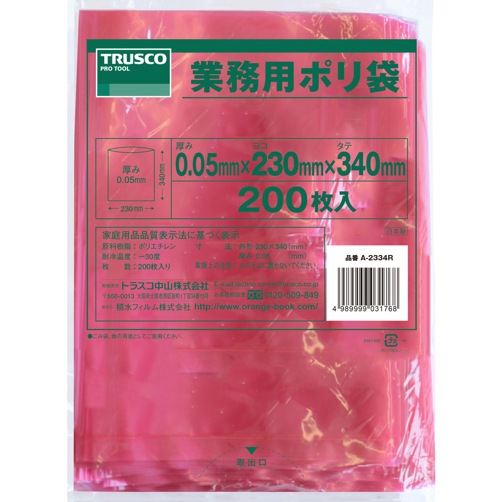小型ポリ袋 縦340X横230Xt0.05 200枚入 赤 A2334R