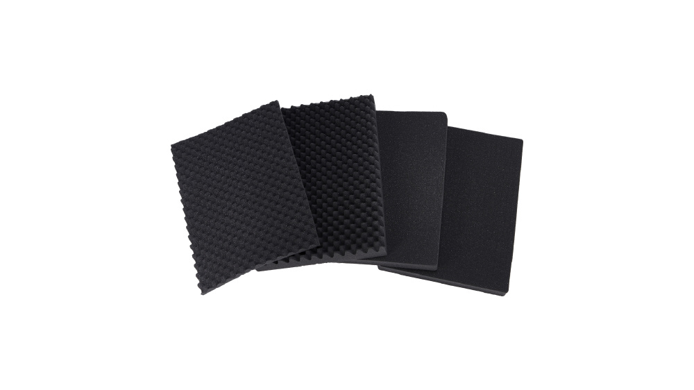 波型ウレタン(軟質)と切れ目入ウレタン(硬質)の緩衝材が収納物を衝撃からしっかりガードします。切れ目入ウレタンは収納物に合わせて抜き形状を簡単に作ることが可能です。