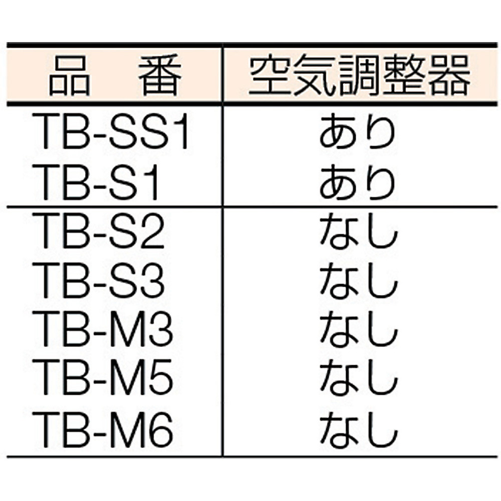 ・手元に空気調整器付(TB-S1のみ)