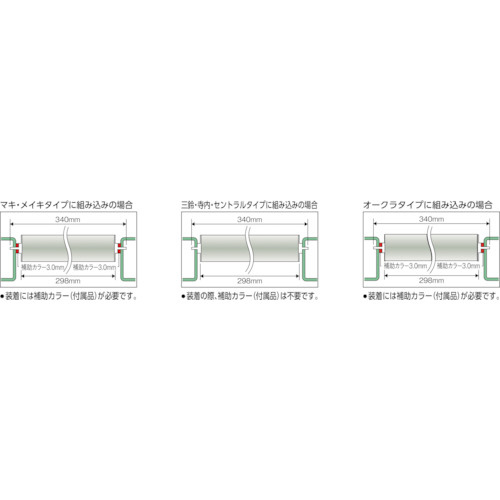 ■付属のカラーの調整によって各メーカーのコンベヤに交換用として装着できるローラーです。