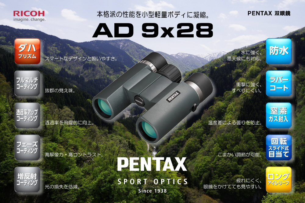 本格派の性能を小型軽量ボディに凝縮。ロングセラー・ダハタイプ双眼鏡です。