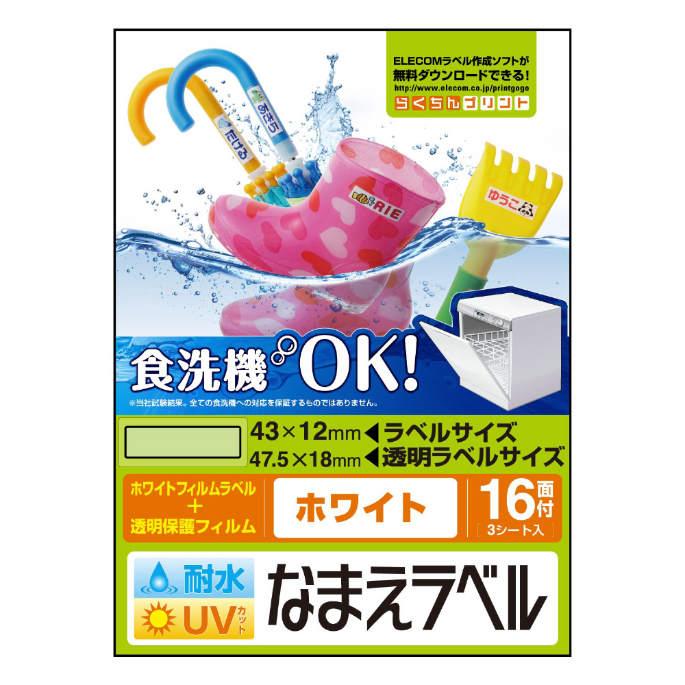耐水耐候なまえラベル インクジェット EDT-TCNMWH5 ホワイト [はがき /3シート /16面 /フィルム]