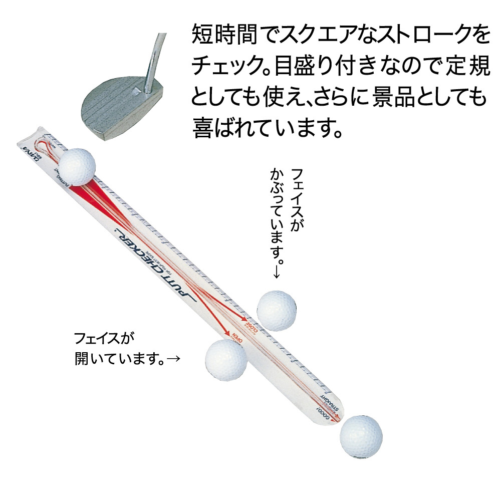 パッティングストロークがどこでも気軽にチェックできます。目盛り付きなのでスケールとしても使えます。正確なストロークを身につけるために最適です。景品としてもオススメです。
