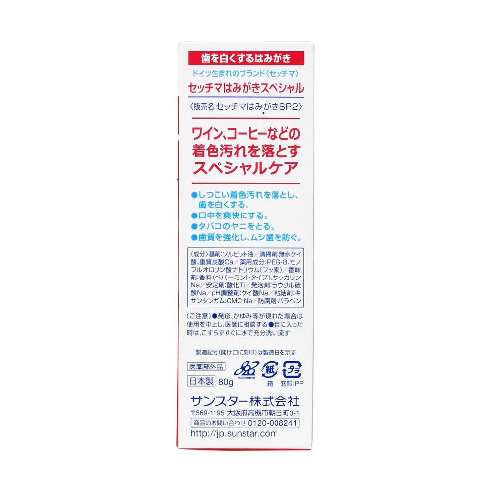 成分1 ソルビット液、無水ケイ酸、重質炭酸Ca、PEG-8、モノフルオロリン酸ナトリウム(フッ素)、香料、サッカリンNa、酸化Ti、ラウリル硫酸Na、ケイ酸Na、キサンタンガム、CMC・Na、パラベン