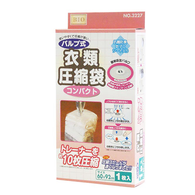 フラットバルブ式衣類圧縮袋コンパクト1P