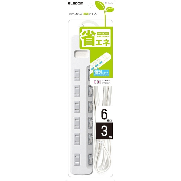 省エネタップ ホワイト T-E6A-2630WH [3.0m /6個口 /スイッチ付き(個別)]