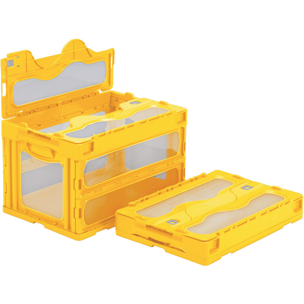 フタ一体型折りたたみコンテナー マドコン 50.2L スライドロック付 イエロー SKO-C-50B-YE