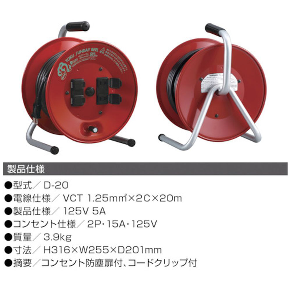 トクサンデーリール 単相100V 20m 円盤(レッド) D20R
