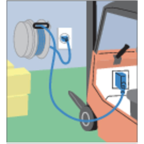 ■バッテリー式フォークリフトや無人自走台車の充電に最適なケーブルリールです。