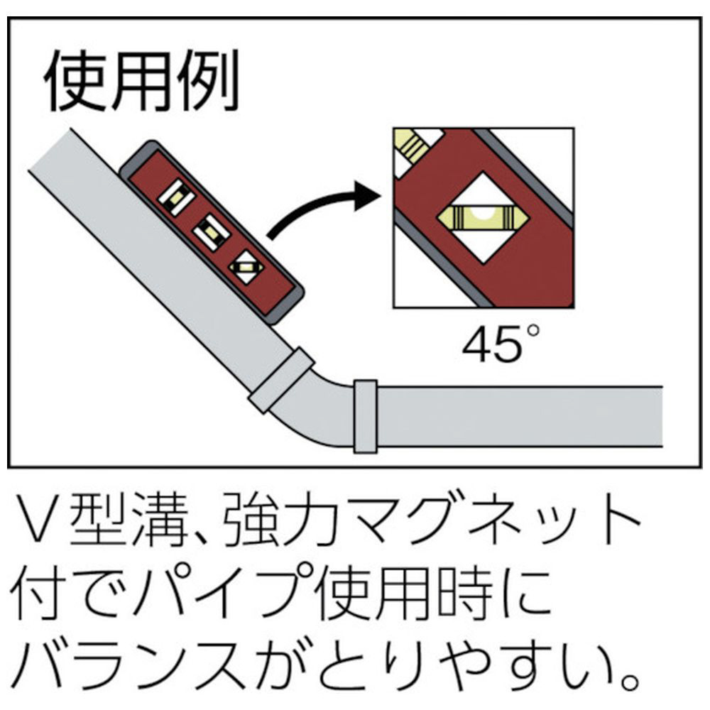 ■V型溝と強力マグネット付きで、パイプ使用時にバランスが取りやすいです。