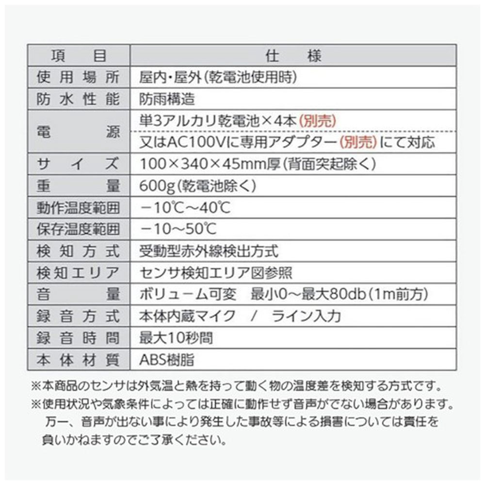 人が近づくと赤外線センサーが検知し、メッセージを伝えます。