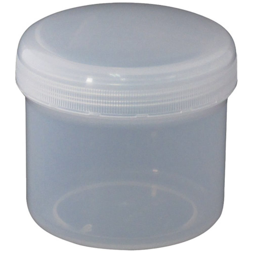口径が広く、内部に突起がないため、ペースト状の物でも全量近く取り出すことができ、中栓付でサンプル容器として使用できます。