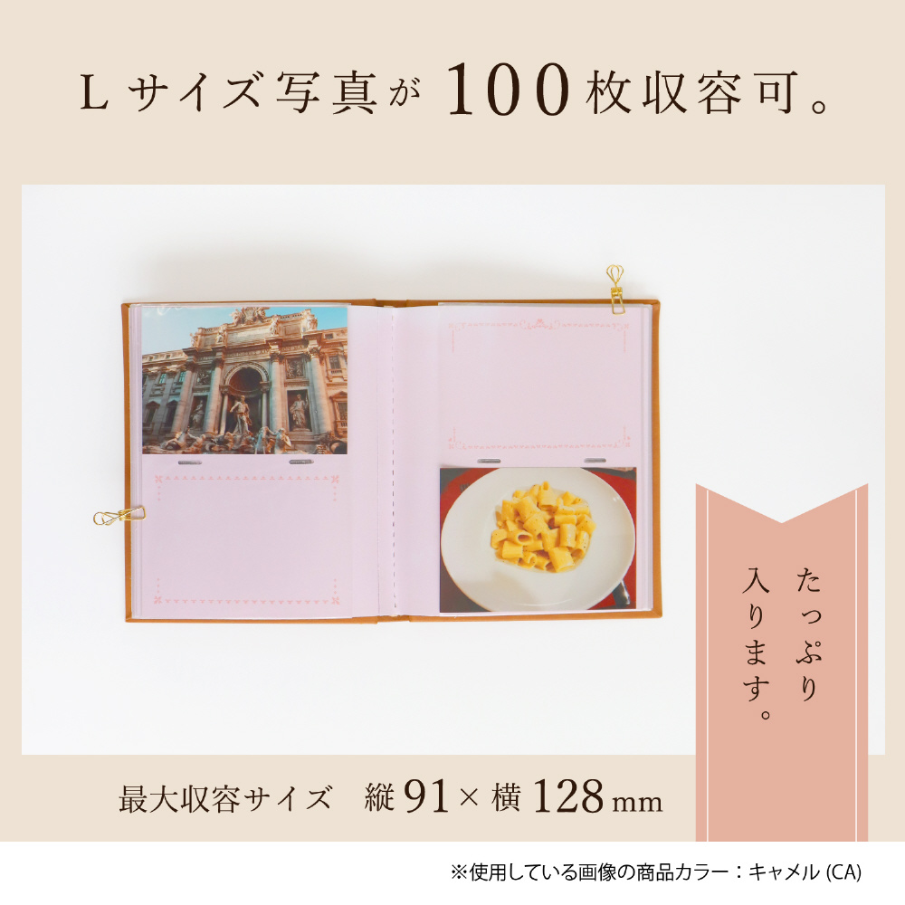 表紙のフレームにはL判の写真が入ります。とっておきの写真を入れて、フォトフレームのような雰囲気でお使い頂けます。