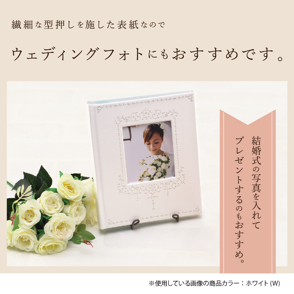 表紙に型押しを施した、高級感のあるアルバム。大切な思い出の写真の収納や、ギフトなどに。