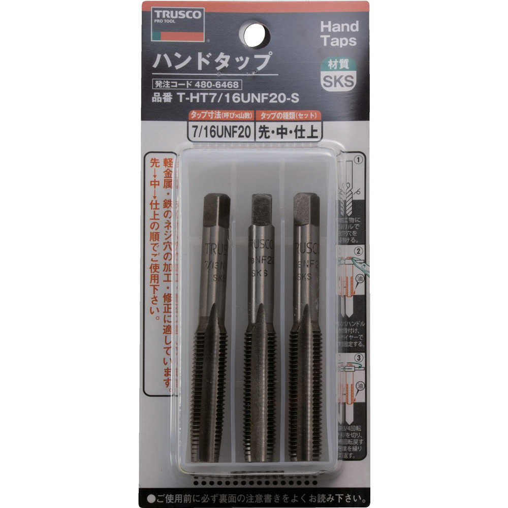 ハンドタップ ユニファイねじ用・SKS 7/16UNF20 セット THT716UNF20S (1セット3本)