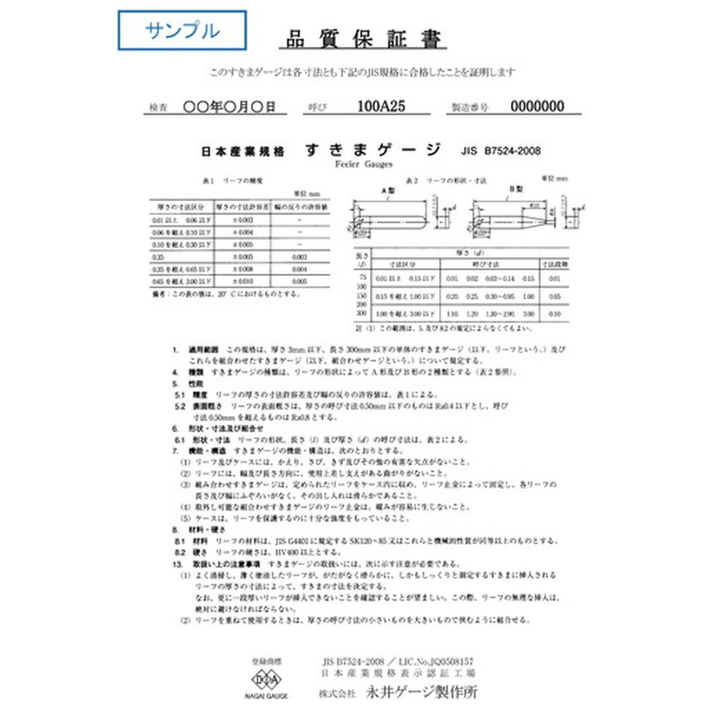 ・セット明細(mm): 0.03、0.04、0.05、0.06、0.07、0.08、0.09、0.10、0.11、0.12、0.13、0.14、0.15、0.20、0.25、0.30、0.35、0.40、0.45、0.50、0.60、0.70、0.80、0.90、1.00