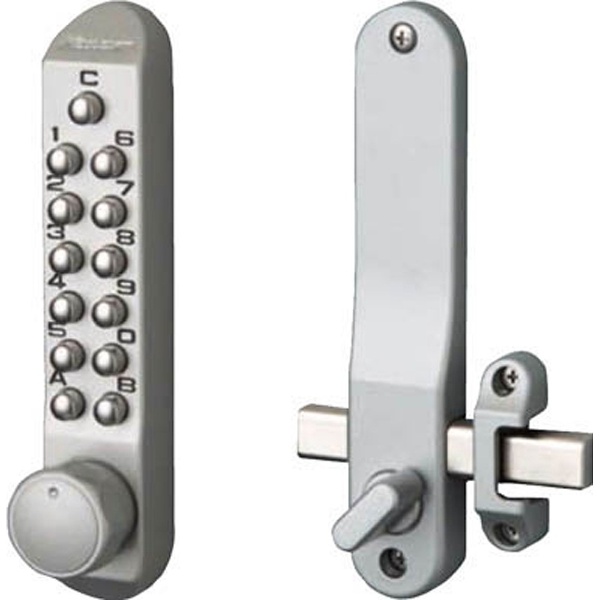 雨に強く電気を使わない、記憶番号がキーの代わりをする、メカニカル機構のキーレス錠です。