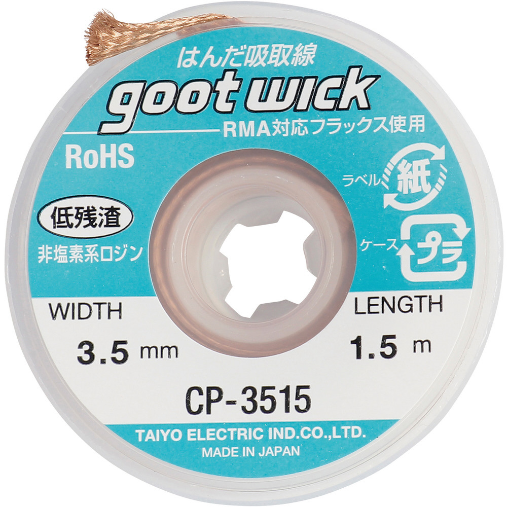 ■銅の編組線に非塩素系の特殊フラックスをしみこませたはんだ吸取線です。