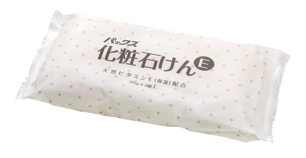 無香料、無着色の洗顔・浴用石けん3個パックです。合成酸化防止剤(BHT、エデト酸塩)を使用せず、天然ビタミンEを配合した肌にやさしい石けんです。