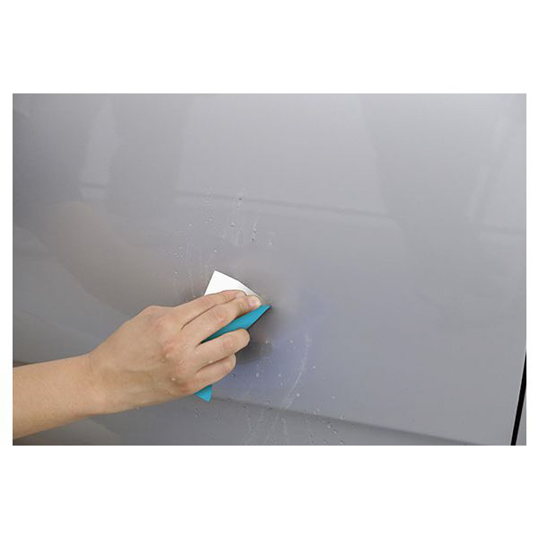 ■2.直線的に往復作業で仕上げます。一方向だけでなく、タテ・ヨコ・ナナメと動かすようにしてください。円を描くように研磨すると、ペーパー跡が残りやすくなります。