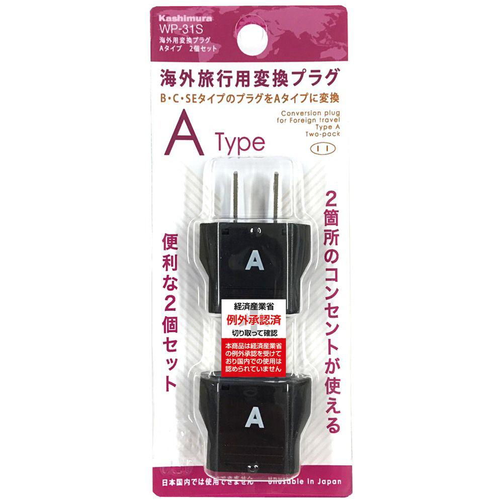 海外用変換プラグAタイプ2個セット ブラック WP-31S