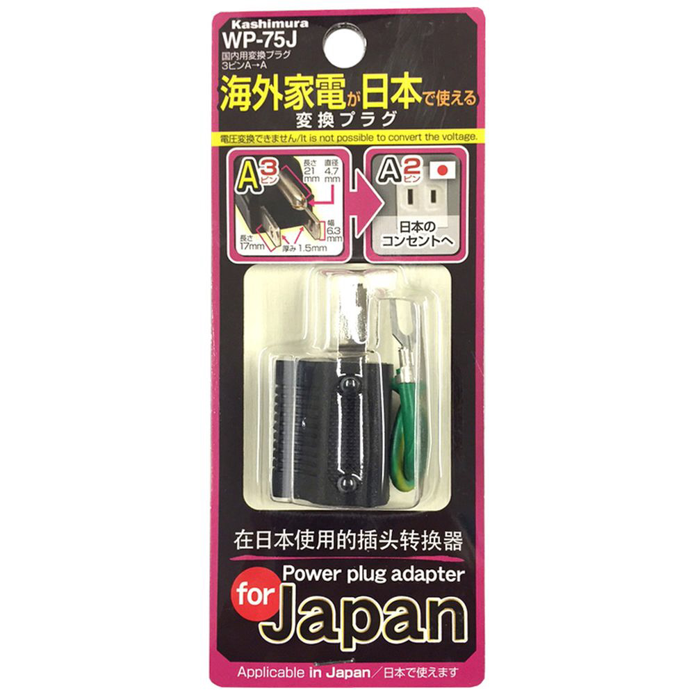 アース付きの3ピンのAタイプのプラグを日本の2ピンのAタイプに変換します。