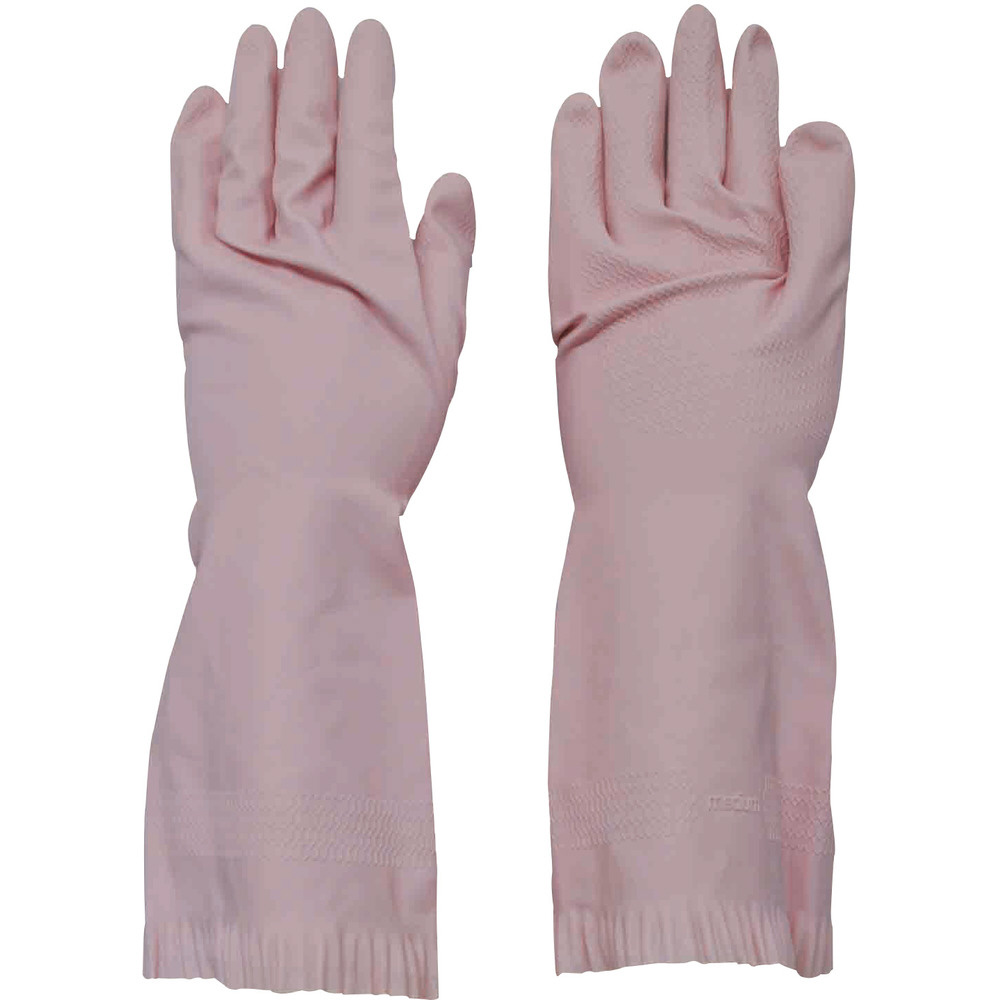 天然ゴム手袋 中厚手 裏毛付 M ピンク 6335